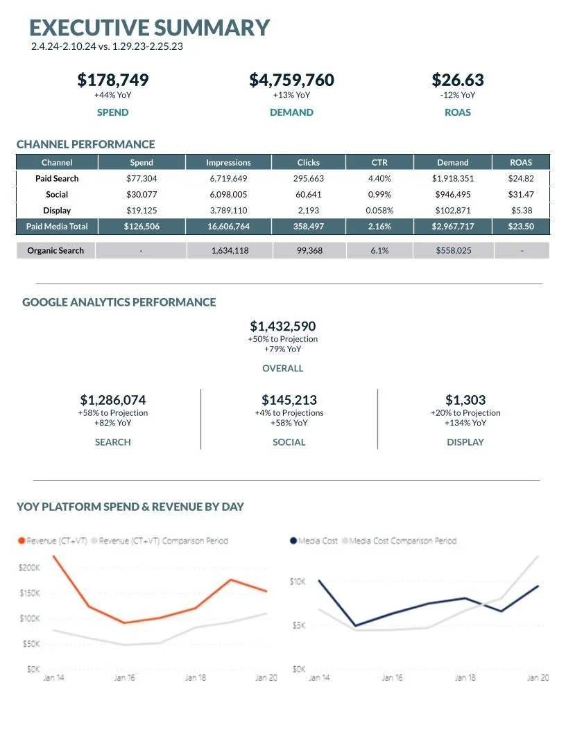Portfolio Past Projects & Work Samples Developing Performance Reports that are Actually Useful Creating Process Efficiencies for Recurring Tasks Event Client Sees a +132% increase in YoY Registrations following Media Strategy Shifts
